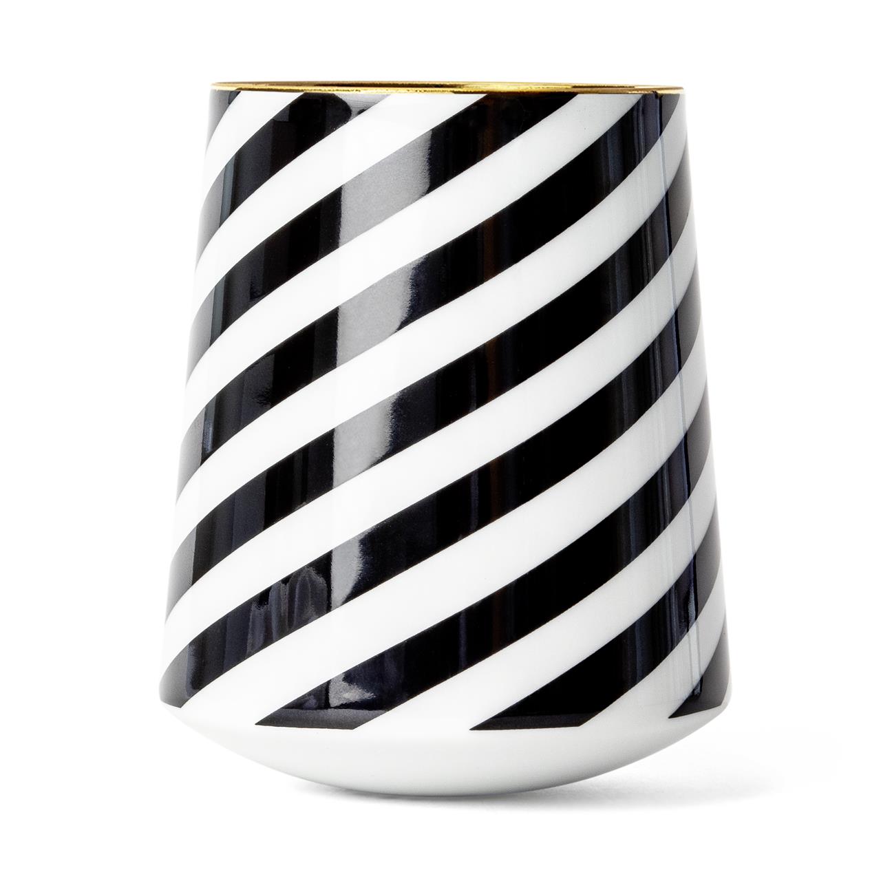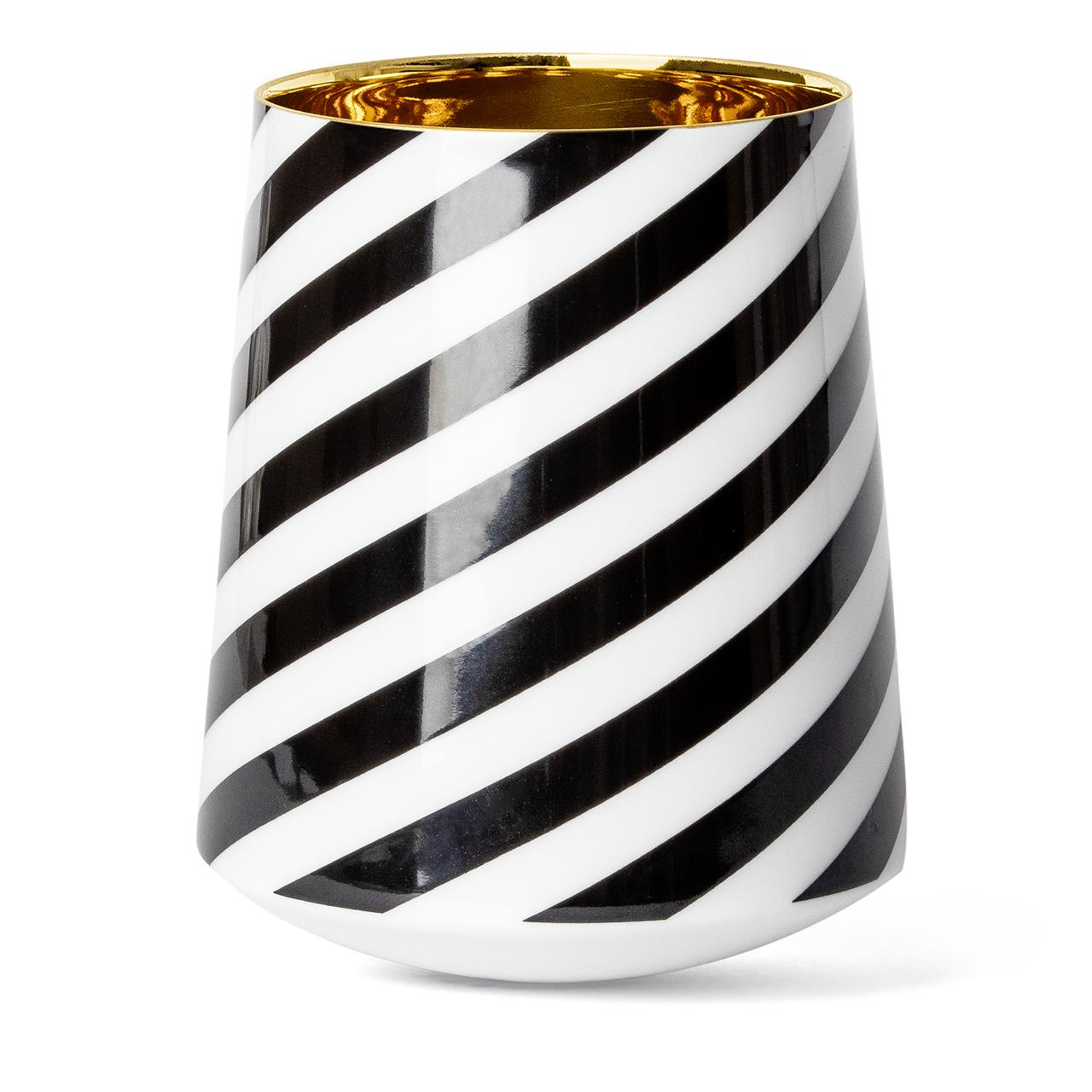 Streifendekor Black Curl. Einmal gedreht, rotieren die schwarz-weißen Tumbler wie