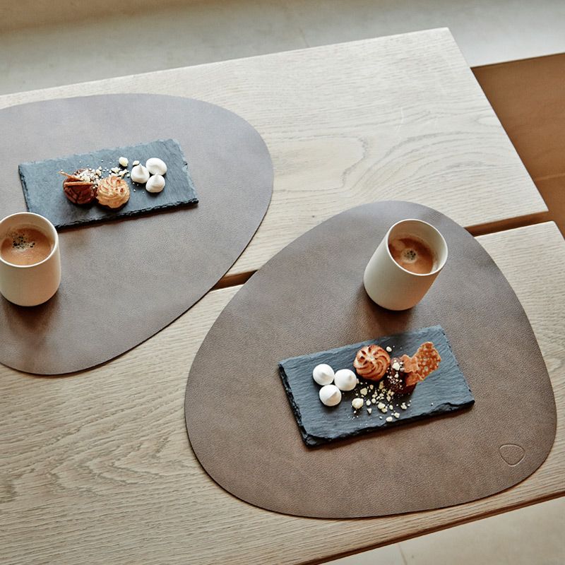 LIND DNA TABLE MAT CURVE ist ein nachhaltiges Lifestyle-Produkt aus recyceltem Leder. TABLE MAT CURVE ist ein traditionelles Tischset in einer organischen Form mit dem Namen "CURVE", die in Dänemark entworfen und hergestellt sind. Die CURVE-Form ist sowohl dekorativ als auch praktisch, da sie keinen unnötigen Platz auf dem Tisch einnimmt und sich leicht reinigen lässt. TABLE MAT CURVE ist in verschiedenen Lederoberflächen und Farben erhältlich, weshalb sie beim Styling Ihres Tisches und Ihres Zuhauses endlose Möglichkeiten bieten. Mit mehr als tausend verschiedenen Variationen von Oberflächen, Formen und Farben bieten wir die größte Auswahl an Tischsets aus recyceltem Leder auf dem internationalen Markt an. Entworfen und hergestellt in Dänemark.