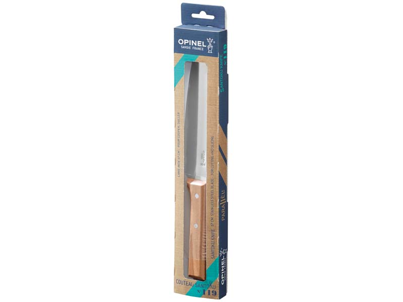 Ein Klassiker aus Japan im europäischen Gewand - der fernöstlichen Küche zollt Opinel Respekt mit dem Santoku aus der Parallele Collection. Die 3 mm starke, rostfreie, universell einsetzbare Klinge aus X50CrMoV15-Stahl ist sicher in einem Buchenholzgriff vernietet.